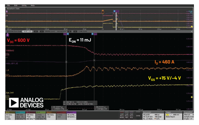 高性能栅极驱动器已在实际测试中证明了其价值。 在包括短路检测时间和总故障清除时间在内的关键参数中,性能可分别低至 300 ns 和 800 ns。 对于额外的安全和保护,测试结果证明,可调软关机功能对于系统的平稳运行至关重要。